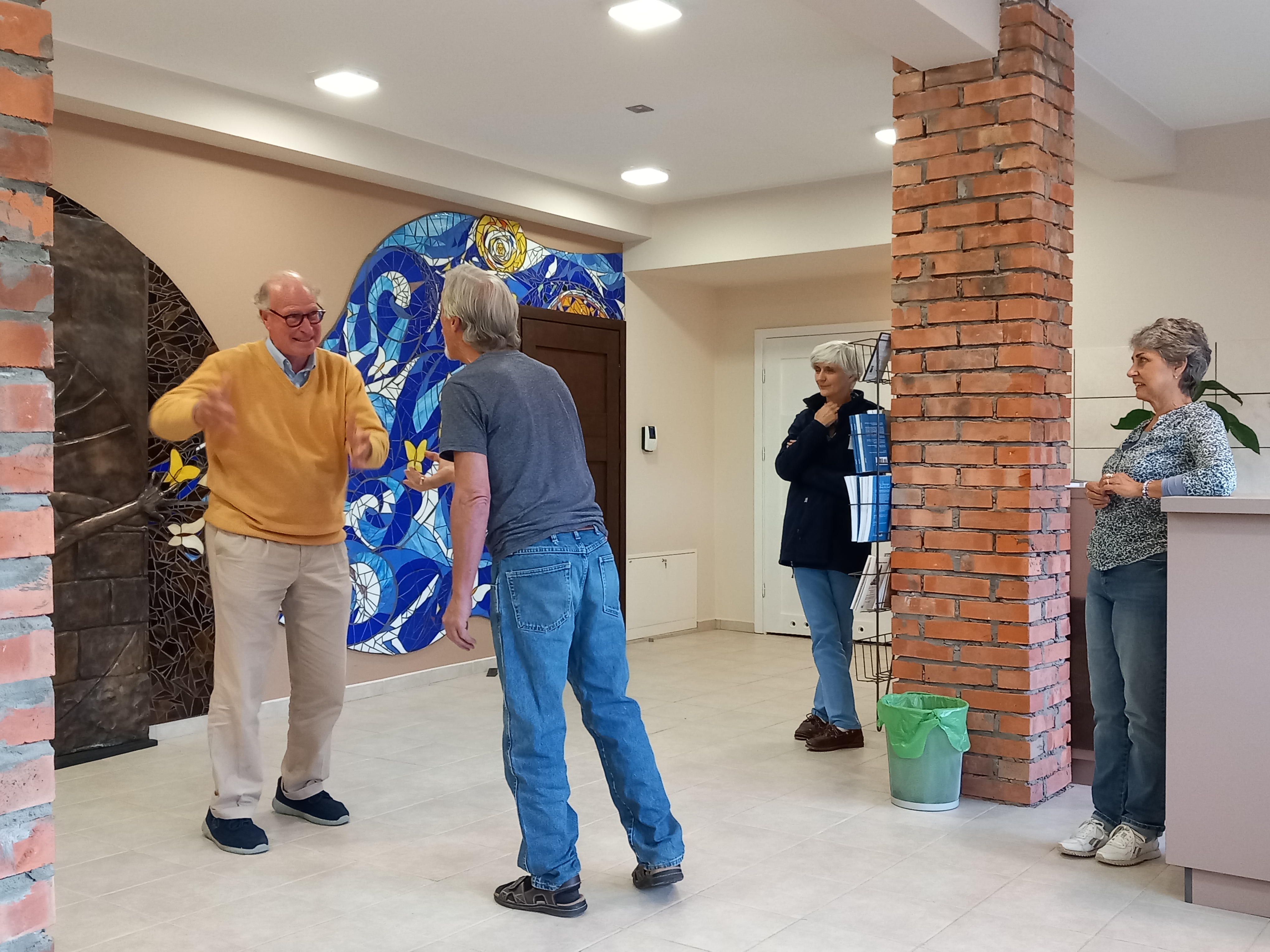 In den letzten Tagen durften wir (Dorothea von Below, meine Frau Maria und ich) einen Mann in die Lager begleiten, der seine jüdischen Wurzeln entdeckt hatte. Seine Großeltern wurden 1944 von der Insel Rhodos (!) von Griechenland in einem wochenlangen Transport mit einem Viehfrachter und Viehwaggons nach Auschwitz deportiert. Kaum dort angekommen wurden sie in Birkenau vergast. Dieses Verbrechen an Juden und anderen Menschen bleibt ein Tiefpunkt der Menschheitsgeschichte. Ein Lichtblick und eine Ermutigung für seinen Glauben an Jesus, dem jüdischen Messias, war für ihn der Besuch von Fountain of Tears und die Begegnung mit dem Künstlerehepaar Rick und Dafna Wienecke und der Besuch des "Haus des Lebens" von Mark und Cathy Warewick in Brzezinka.